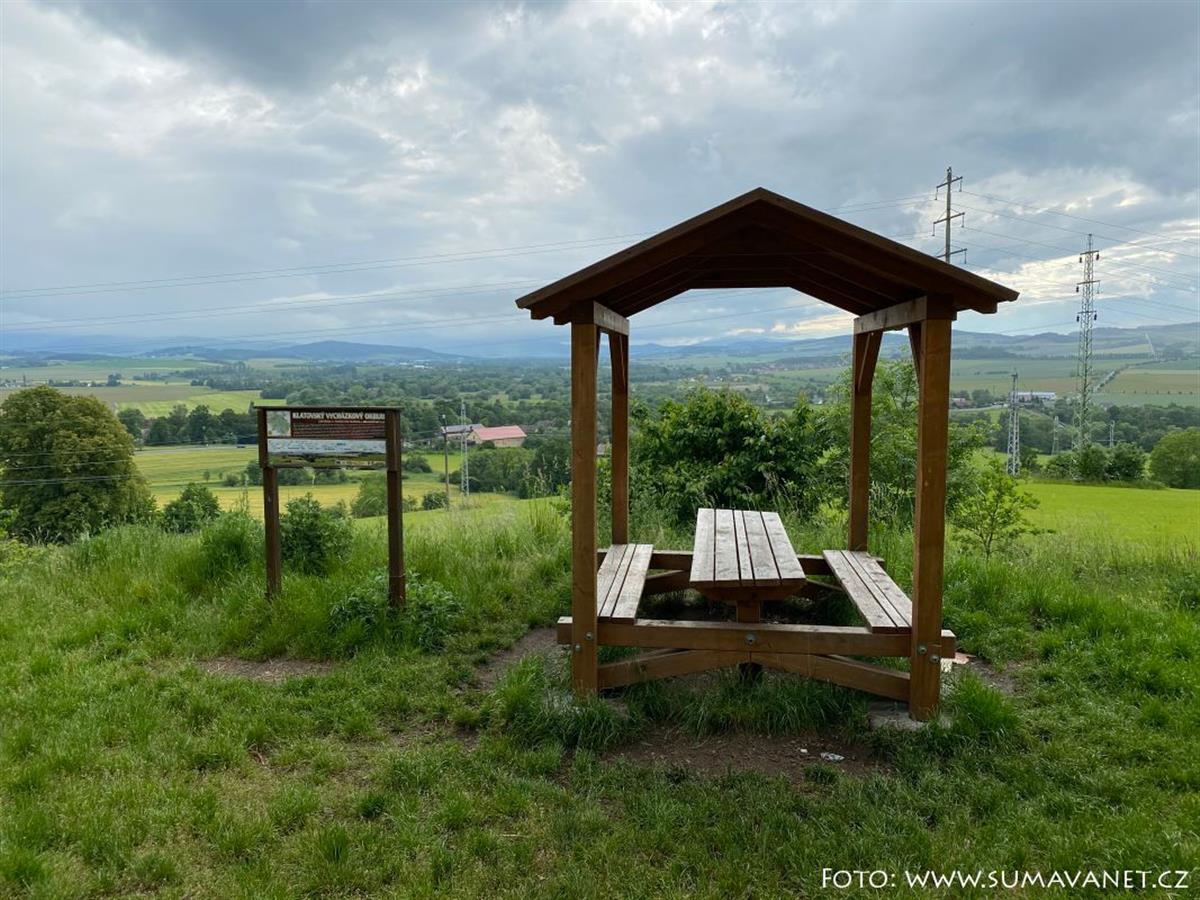 Mercandinovy sady, molo rybníka → Sady Mistra Jana Husa → Židovský hřbitov → Křesťanský vrch → Šibeniční vrch → Železniční nádraží Klatovy → Kostel sv. Martina na Hůrce → Mercandinovy sady
