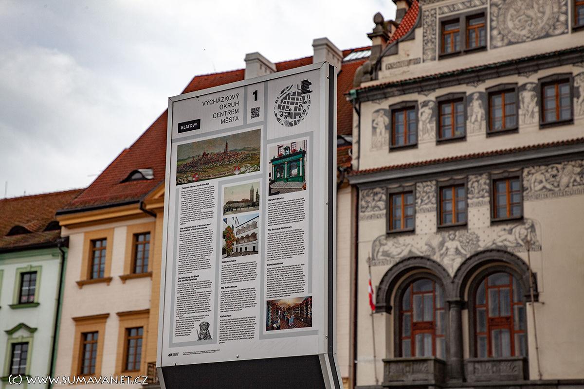 Vycházkový okruh centrem Klatov vznikl v roce 2016 pro individuální návštěvníky Klatov, kteří mají zájem o krátké seznámení s historií města a jeho nejvýznamnějšími památkami. Kromě zajímavostí zde najdete i historické fotografie a stará vyobrazení Klatov. Rozšiřující informace a další obrázky lze najít na internetu pomocí QR kódu.