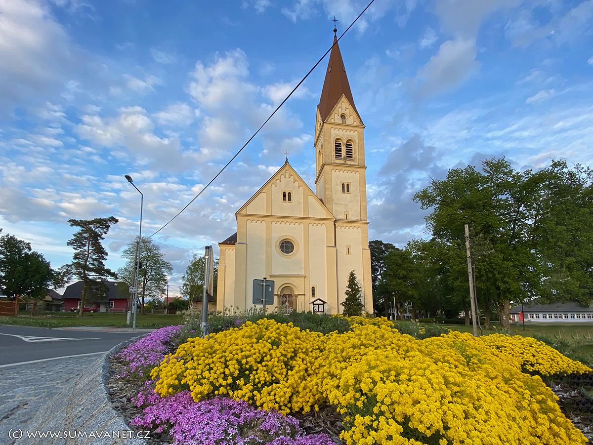 Kostel, který pojme až 700 věřících, byl 28. září v den svátku Sv. Václava v roce 1901 vysvěcen budějovickým biskupem Martinem Říhou. Ani tomuto kostelu se nevyhnuly konfiskace zvonů v obou světových válkách, ale vždy se našlo dostatek místních dárců na pořízení nových zvonů. Ty současné byly na věž kostela Sv.Václava zavěšeny v roce 1971 a jejich polední a večerní vyzvánění je dnes zajišťuje automatika.