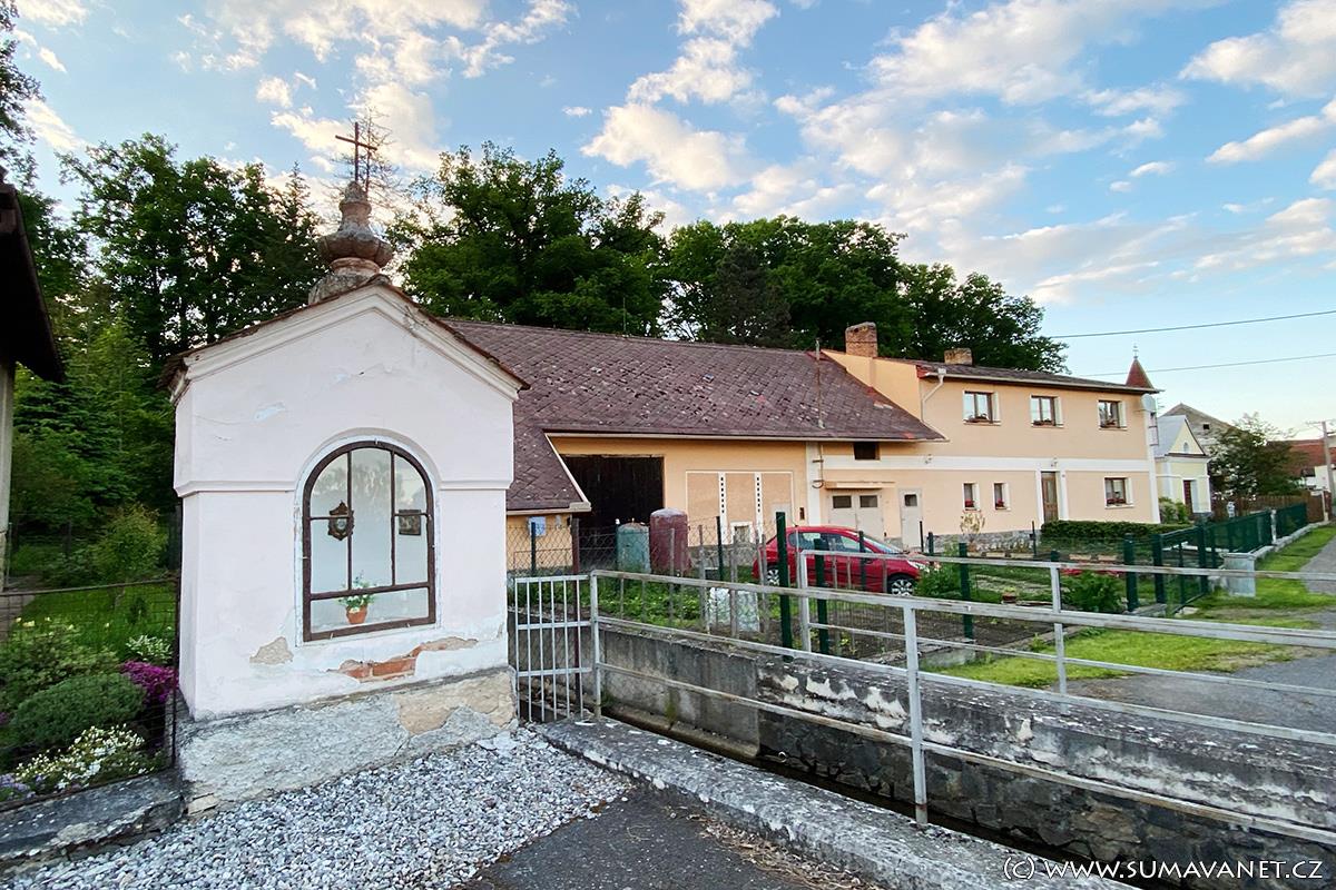 Malá zděná kaplička stojí v zahradě u čp.33, v bývalém domě Leopolda Kodyma a podle vyprávění stávala na ostrůvku uprostřed rybníka v dolním Bezděkově a byla na ní připevněna deska se známým epigramem K.H. Borovského „ Svatý Jene z Nepomuku