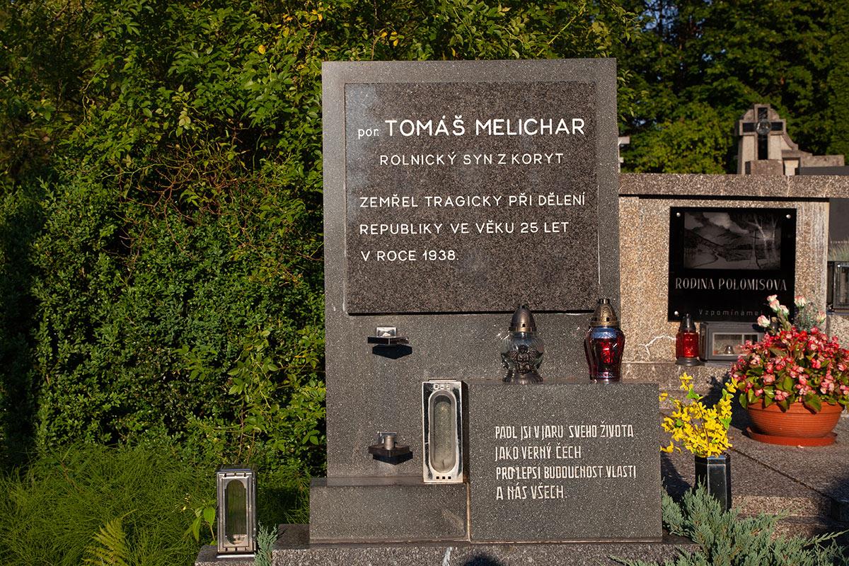 Na hřbitově jsou dva náhrobky ze stejného kamene na hrobech hraběnky Terezie Kúniglové a romanopisce a hospodářského inspektora Heinricha Christiana Spiesse. Oba náhrobky byly původně součástí ohradní zdi, při rozšiřování hřbitova byly vyňaty, položeny na hroby a roku 1934 byly nezřetelné nápisy v původním znění i s chybami obnoveny vysekáním Josefem Polákem a Františkem Mandíkem.