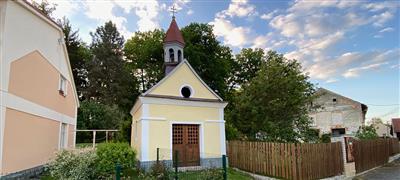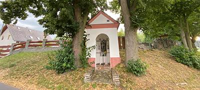 Malá zděná kaplička stojí v zahradě u čp.33, v bývalém domě Leopolda Kodyma .