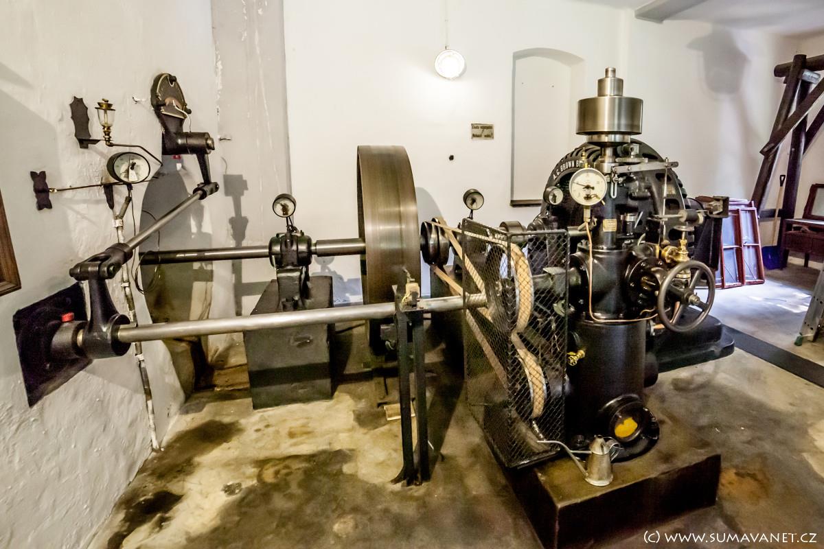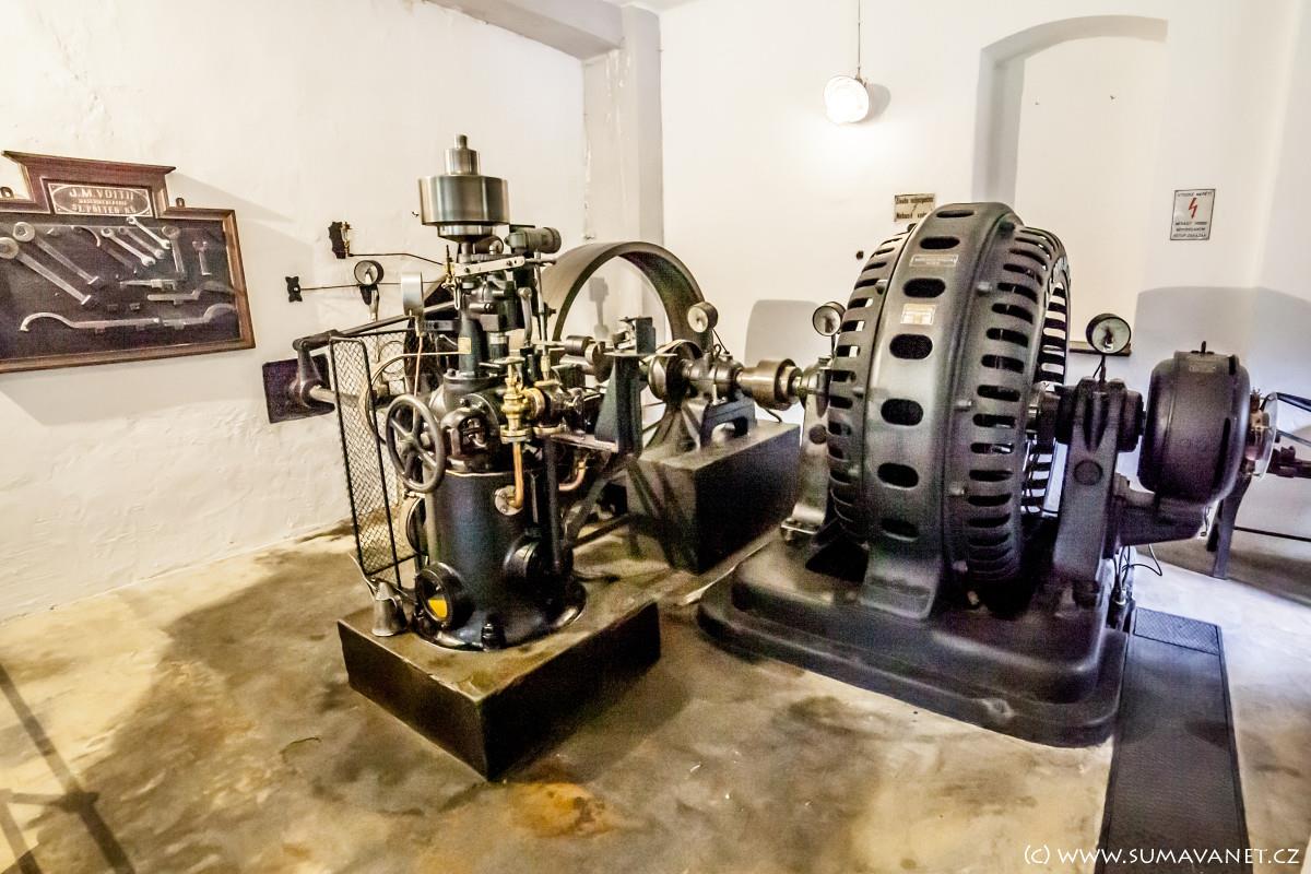 Kašperské Hory. Původní soustrojí s Francisovou turbínou je dosud