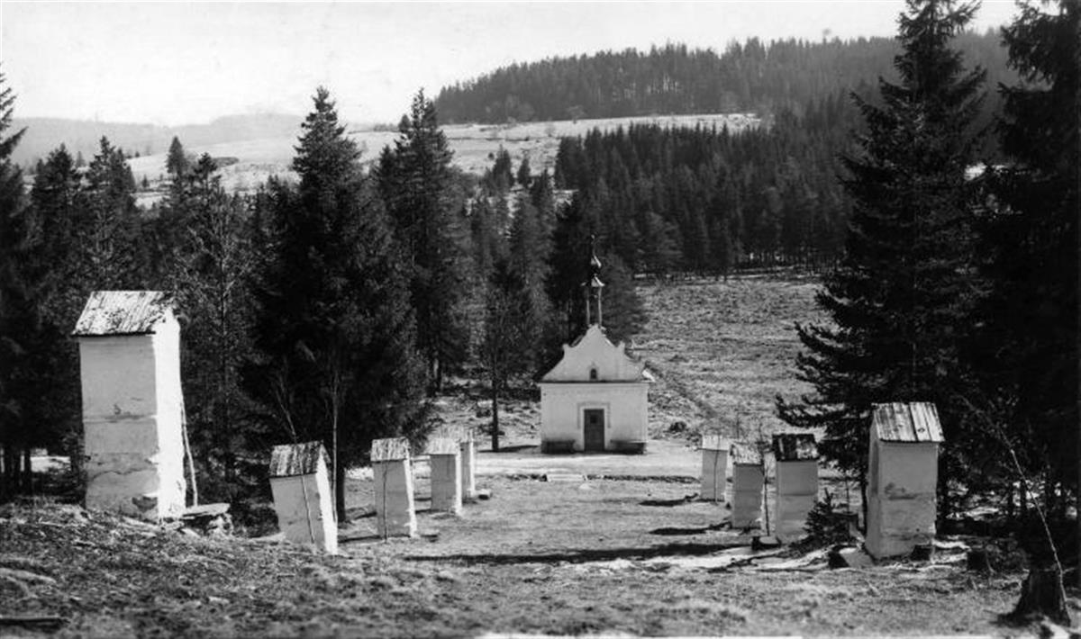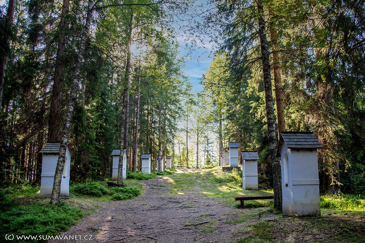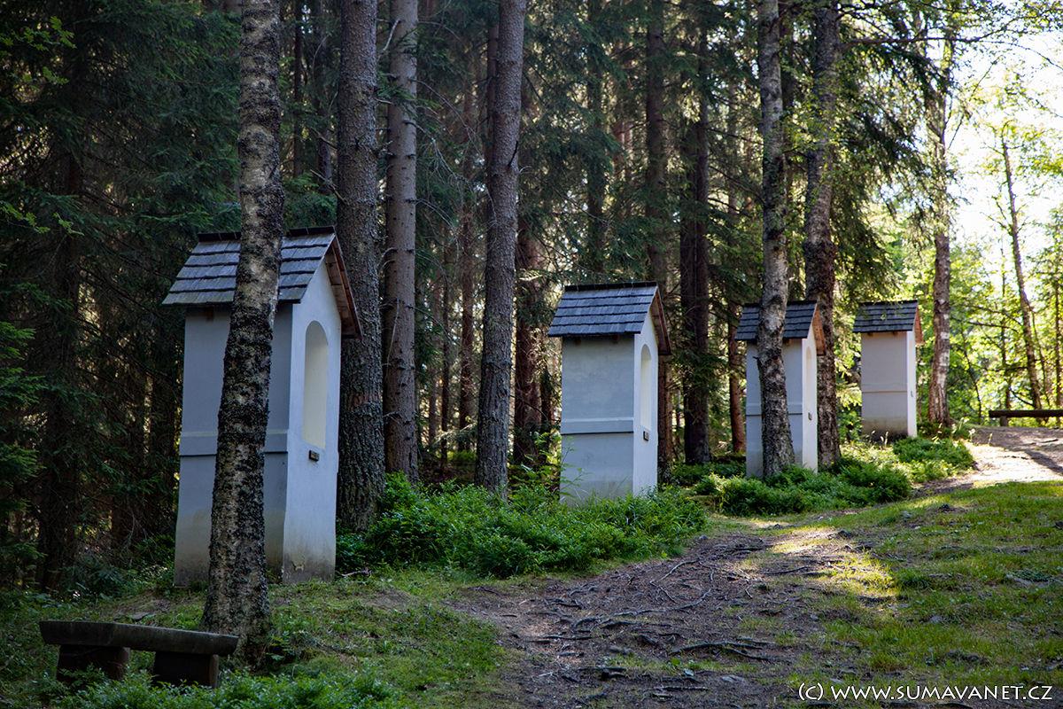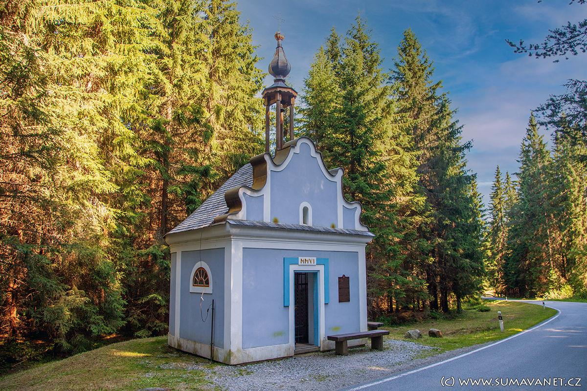 Původní zděná kaplička Povýšení Svatého kříže postavená v roce 1860 a zasvěcená sv.Anně, ochranitelce početných rodin a ochránkyni dobrých sklizní, stála za obcí směrem na Horní Vltavici. Měla vysokou zděnou zvoničku a překrásný prolamovaný štít. Od ní se do kopečka skalnaté kalvárie rozbíhaly zděné kapličky křížové cesty.