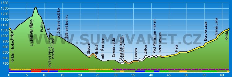| 61.5 km | 1050 m n.m. | 49°0'59'' s.š. | 13°34'52'' v.d. | 0.35 km | 331 | 15 m | 0 m | ||||