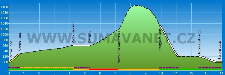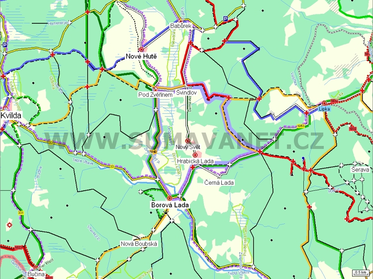 Borová Lada | Svinná Lada | Pod Zvěřínem | Šindlov | Rozc. Pod Kamennou | Štajglova Lada | Nový svět - rozc. | Borová Lada