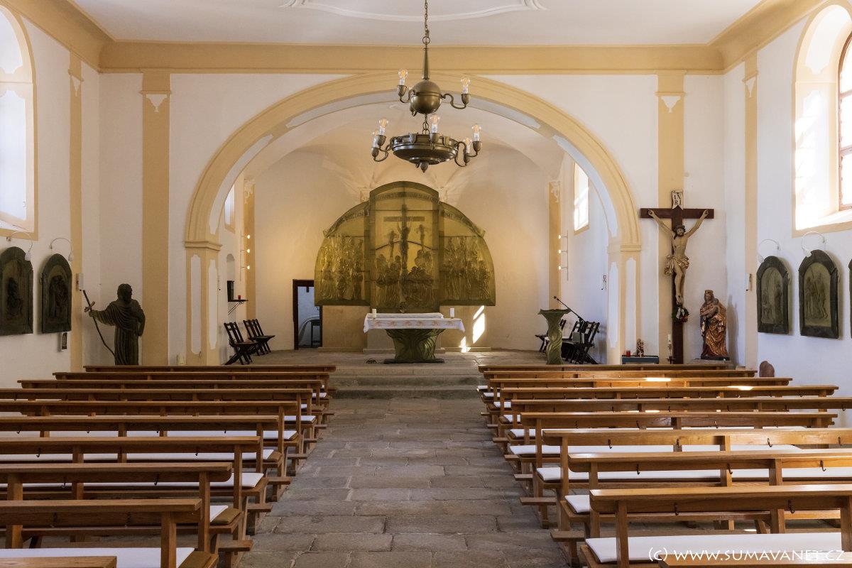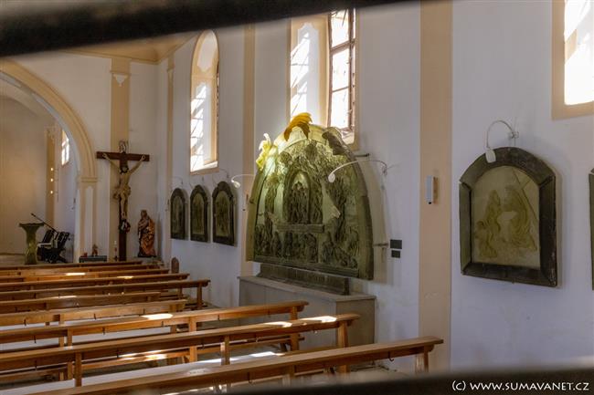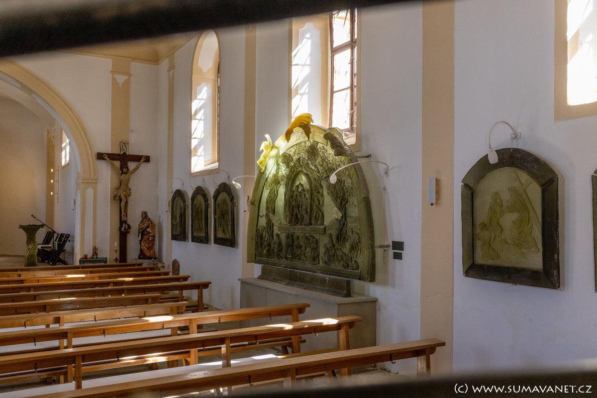V roce 2001 vytvořila známá místní sklářská výtvarnice Vladěna Tesařová unikátní skleněný oltář se scénou Ukřižování a vyobrazením světců středoevropského prostoru v čele se sv. Vintířem. Jedná se o třídílný reliéf o rozměrech 4,5 × 3,2 m a hmotností téměř 4 tuny. Dílo navazuje na tradici zpracování skla na Šumavě.