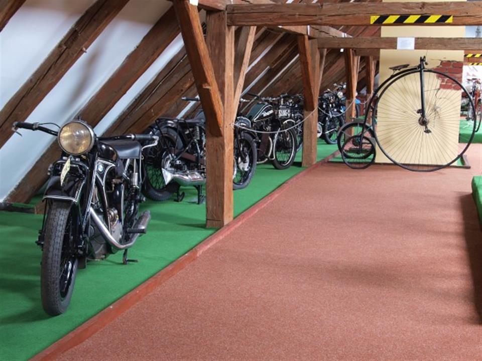 A pravdou je, že se v tomto městě střetává hned několik velikánů motoristického průmyslu, kde snad ani není možné vybrat vítěze. K vidění je motocykl Čechie (neboli Böhmerland), který je často označován za jeden z nejbizardnějších motocyklů, který kdy spatřil světlo světa. Jedná se totiž o nejdelší vyráběný motocykl na světě, který kdy byl sestrojen. To ovšem není jediná neobvyklost, která se k Čechii váže. Naproti tomu, na první pohled relativně velmi nenápadný motocykl JAC 500 jako jediný dochovaný stroj této značky na světě představuje významného nositele kulturně-historického dědictví českého národa. Prvenství mezi nejstaršími stroji patří motocyklu FN z roku 1911. Jízdní kola jsou zastoupena například vysokým jízdním kolem značky Kohout z roku 1890, kardanovým kolem firmy FENDT či úplně prvním předchůdcem jízdních kol, jak je dnes známe, dřevěným odrážedlem barona von Dreise.